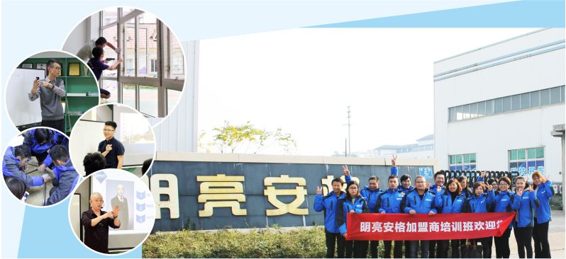 明亮安格開設培訓班,以成熟的培訓機制,特聘專業(yè)講師和優(yōu)秀加盟商為加盟商開展企業(yè)文化、產品知識、測量安裝、銷售技巧、活動策劃、市場推廣、渠道拓展、公關禮儀等專題培訓。